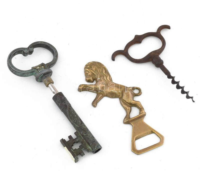 Kulcs alakú dugóhúzó + oroszlán figurás sörnyitó + antik dugóhúzó https://www.darabanth.com/hu/479-Gyorsarveres/479.0/Mutargy-papirregiseg-egyeb/Bolhapiac~500017/Kulcs-alaku-dugohuzo-plus-oroszlan-figuras-sornyito-plus-antik-dugohuzo~II3265984