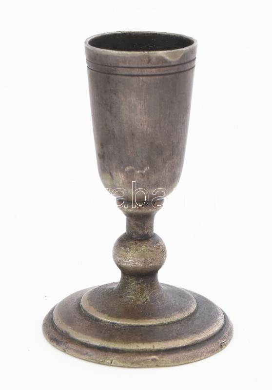Leírás: Antik gyertyatartó, magyar koronás jelzéssel és mesterjegyekkel, súlyozott, m: 6,5 cm