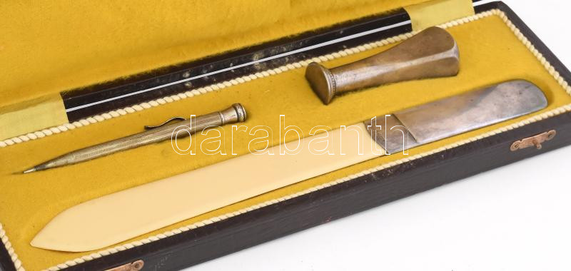 Saturnus íróasztali szett: ezüst (Ag) töltőceruza, alpakka pecsételő, ... https://www.darabanth.com/hu/479-Gyorsarveres/479.0/Mutargy-papirregiseg-egyeb/Mutargyak-antikvitas~500007/Saturnus-iroasztali-szett-ezust-Ag-toltoceruza-alpakka-pecsetelo-alpakka-nyelu-levelbonto-~II3271288