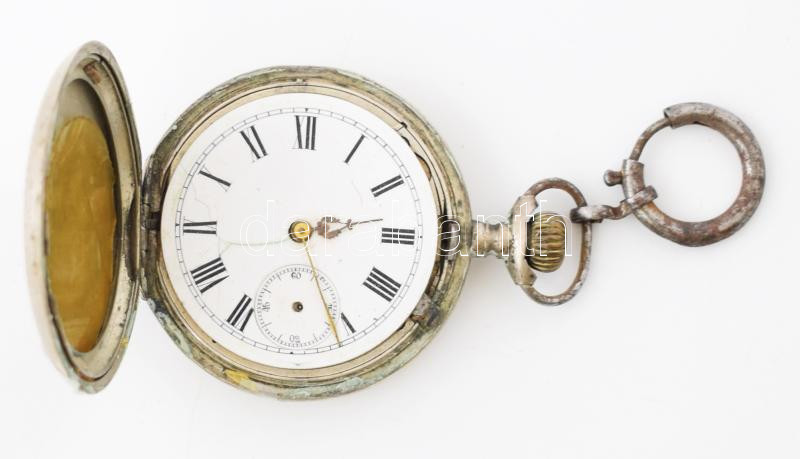 Leírás: Ezüst (Ag) tokos zsebóra, sérült, javításra szorul, bruttó 90g