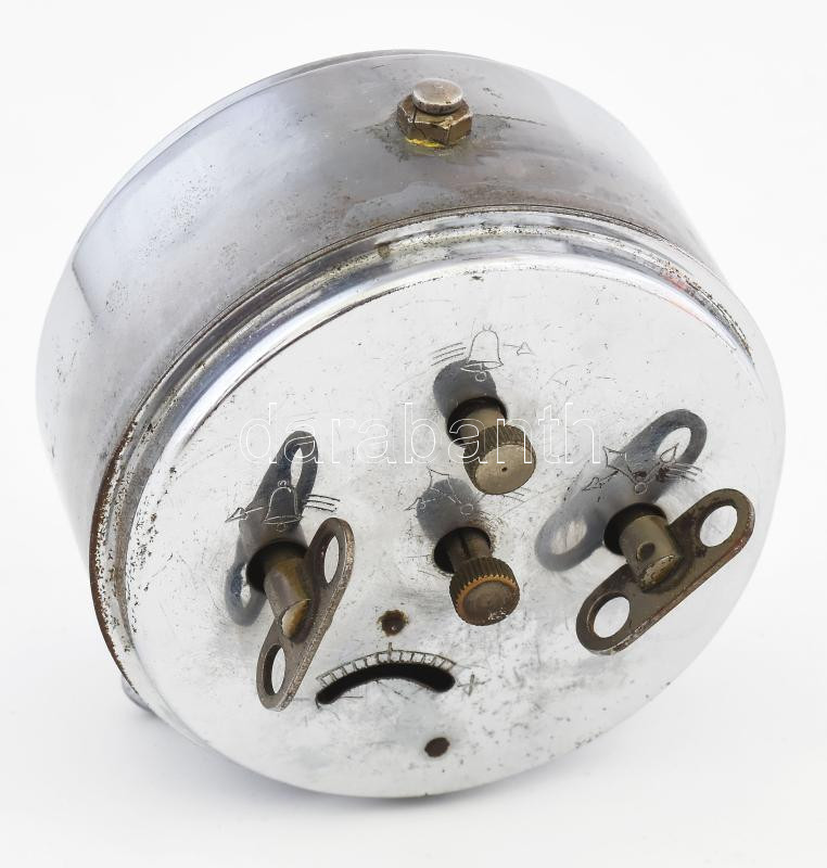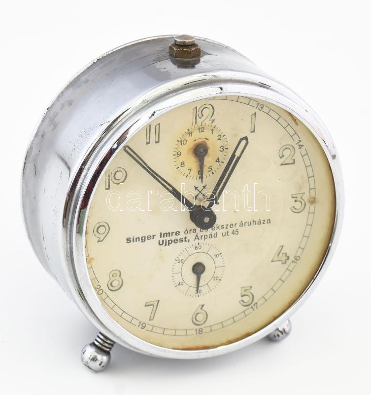 Leírás: Régi vekkeróra, Singer Imre óra és ékszer áruháza, Újpest, kis rozsdafoltokkal, kopással, m: 9,5 cm