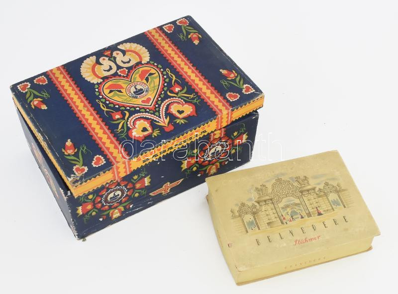 Leírás: Stühmer Belvedere reklámdoboz 12x17 cm + Szent István csokoládé fadoboz23x16x12 cm