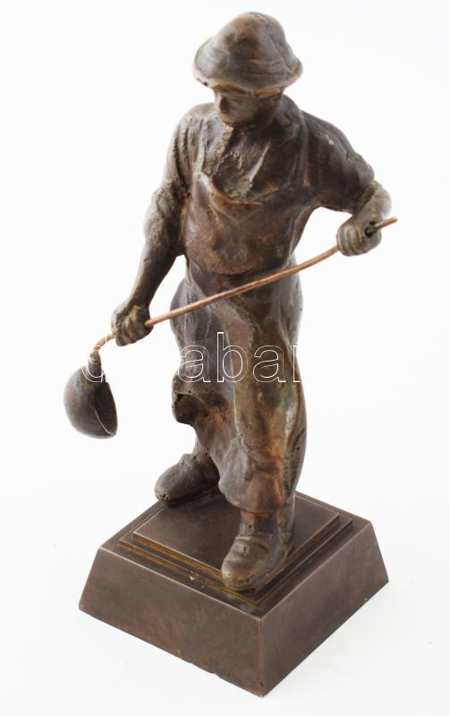 Öntőmunkás. Bronz szobor, cca 4,5 kg, jelzés nélkül, kanál javított, m: 29 cm /// KIZÁRÓLAG SZEMÉLYES ÁTVÉTEL, NEM POSTÁZZUK / ONLY PERSONAL COLLECTION IN OUR OFFICE!