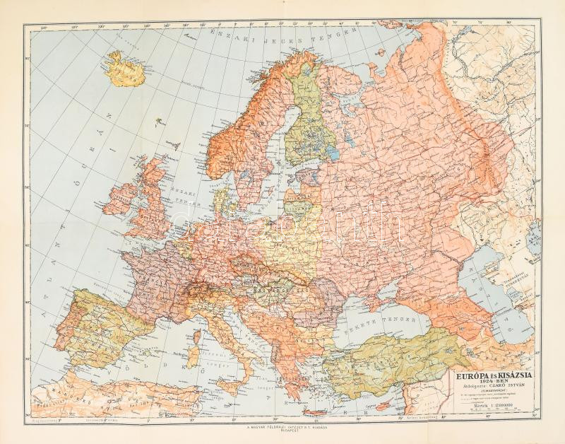 Leírás: Európa és Kisázsia térképe 1924-ben, átdolgozta: Czakó István, 1 : 12.000.000, Bp., Magyar Földrajzi Intézet R.T., 42x54,5 cm