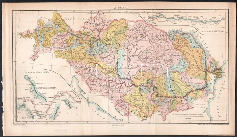Leírás: cca 1900 'A Duna' térképe, rajzolta. Homolka József, 1:4.500,000, Pallas Nagy Lexikona, Bp., Posner-ny, 20x37 cm