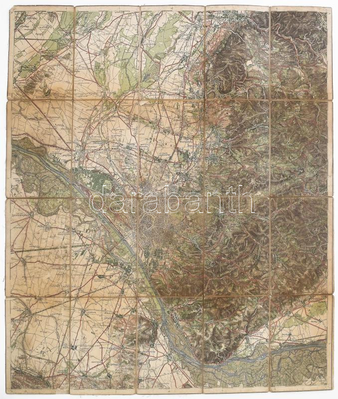 cca 1910 Umgebungskarte Wien / Bécs és környékének térképe, 1 : 75.000, vászonra kasírozva, kissé viseltes állapotban, hátoldalán "Molnár Imre Einjährig Freiwill" (egyéves önkéntes) névbejegyzéssel, 57,5x51,5 cm