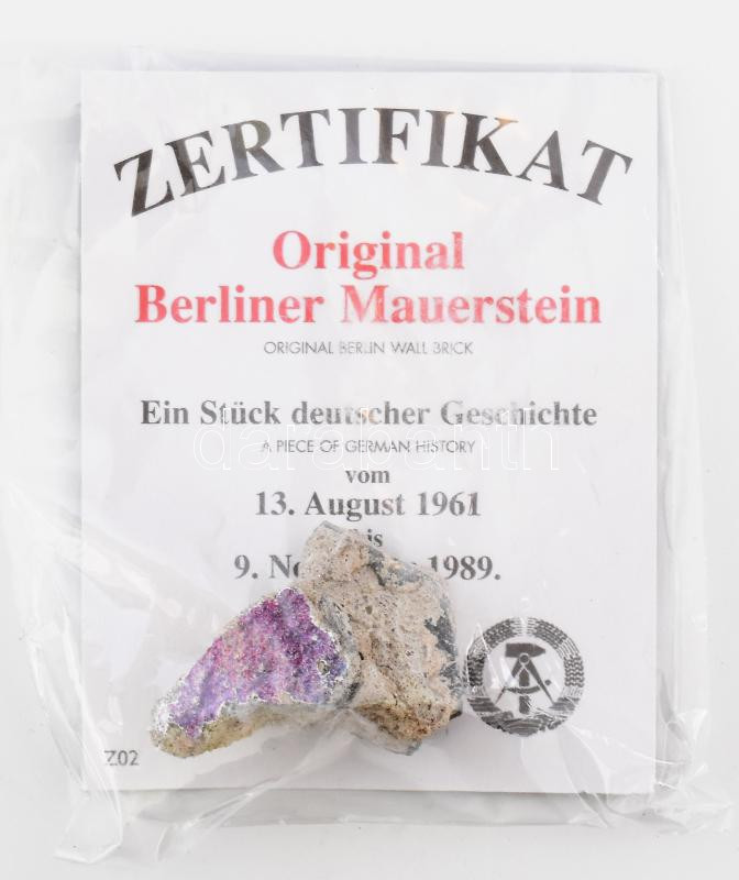 A Berlini fal egy darabja, tanúsítvánnyal https://www.darabanth.com/hu/479-Gyorsarveres/479.0/Mutargy-papirregiseg-egyeb/Tortenelmi-dokumentumok-keziratok-erdekessegek~500024/A-Berlini-fal-egy-darabja-tanusitvannyal~II3266416