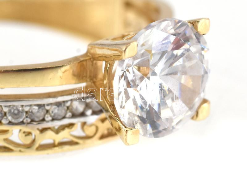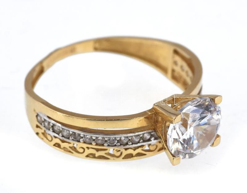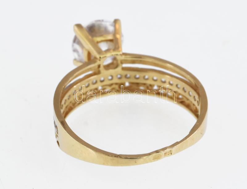 Leírás: 14K arany (Au) gyűrű, mesterséges kővel. Jelzett br 2,2 g, m: 54