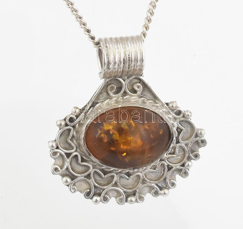Leírás: Ezüst (Ag) nyaklánc mesterséges borostyánnal Jelzett br 17,6 g