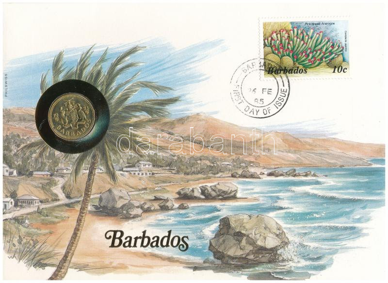 Barbados 1973. 5c felbélyegzett borítékban, bélyegzéssel, német nyelvű leírással T:XF Barbados 1973. 5 Cents in envelope with stamp and cancellation, with German description C:XF