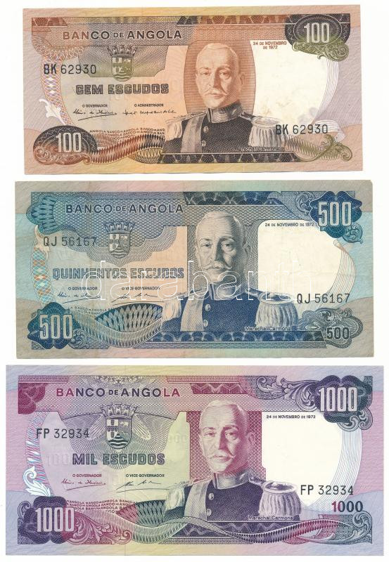 Leírás: Angola 1972. 100E + 500E + 1000E T:F