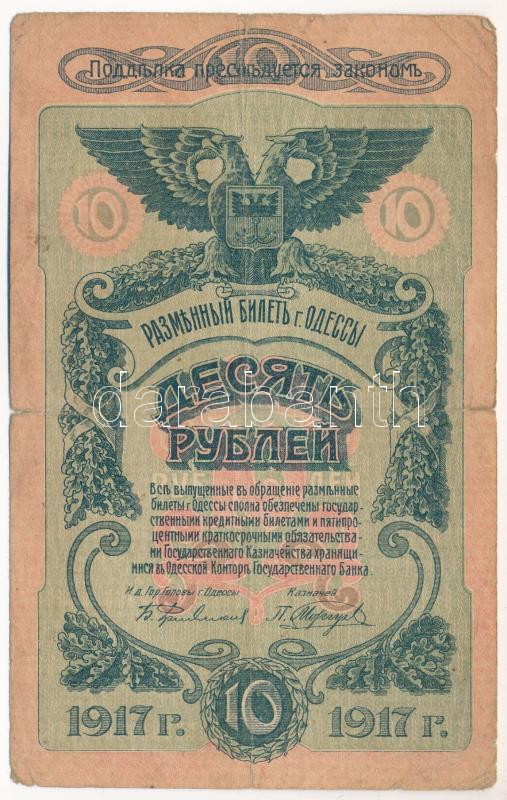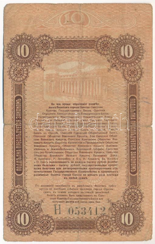 Russian Civil War / South Russia / Army of Denikin and Wrangel 1917. 10 Rubles C:VG tears Krause P# S336