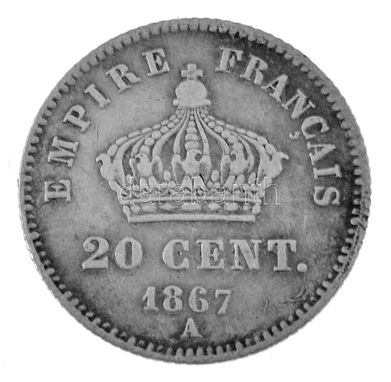 Franciaország / Második Császárság 1867A 20c Ag "III. Napóleon" kapszulában T:AU-XF patina