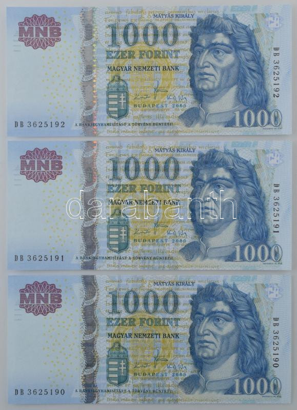 2009. 1000Ft "DB" (3x) sorszámkövetők T:UNC https://www.darabanth.com/hu/479-Gyorsarveres/479.0/Numizmatika/Magyar-bankjegyek~1500008/2009-1000Ft-DB-3x-sorszamkovetok-T-UNC~II3266107