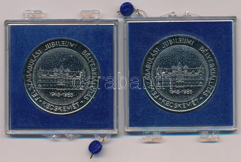 Leírás: 1985. "Magyar Bélyeggyűjtők Országos Szövetsége / Felszabadulási Jubileumi Bélyegkiállítás - Kecskemét 1945-1985 " (2x) fém emlékérem, plombált ÁPV tokban (~42,5mm) T:UNC