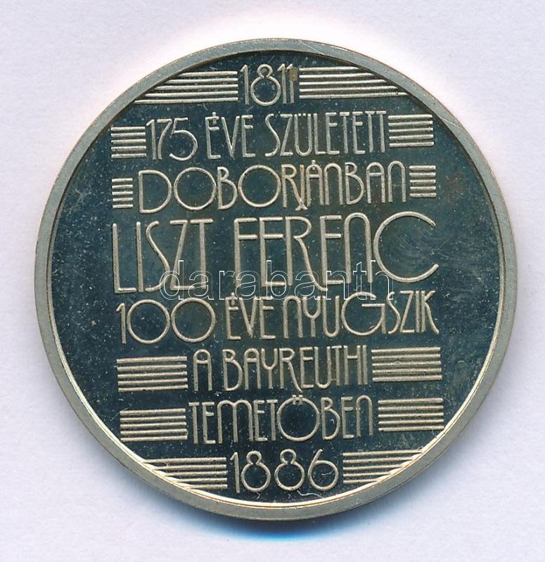 Fülöp Zoltán (1951-) 1986. "175 éve született Doborjánban Liszt Ferenc - 100 éve nyugszik a Bayreuthi temetőben" Cu-Ni emlékérem kapszulában (32mm) T:AU (eredetileg PP)
