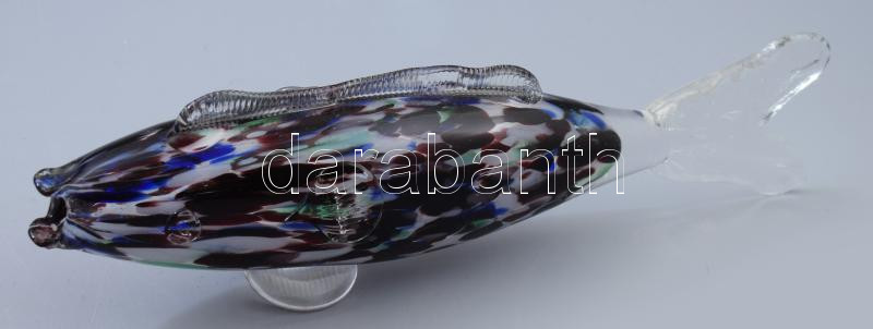 Leírás: Cseh üveg hal, formába öntött, anyagában színezett, hibátlan 28 cm