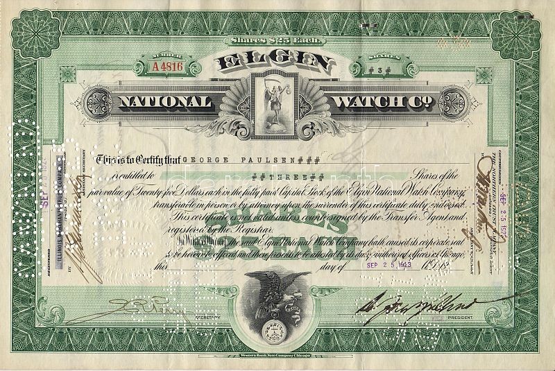 Amerikai ELGIN 14k. arany zsebóra Az óra 14k. arany 1886-1888 között készült. Az óra nemrég lett tisztítva, pontos, kitűnő állapotban van. Súlya. 52,7g Átmérő 40mm korona nélkül + ELGIN National Watch Co. részvény 1923-ból a kiváltást igazoló szelvénnyel együtt