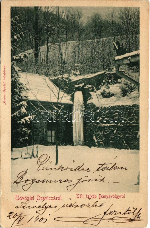Leírás: 1901 Oravica, Oravita; Téli tájkép Bányavölgyről. Gross Gyula kiadása / winter (EK)