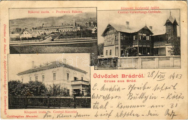 1903 Brád, Rákova aranyzúzda, Központi ügykezelő épület és központi iroda / Pochwerk Rákova, Central-Verwaltungs-Gebäude, Central-Kanzelei / gold mine, offices (EB)