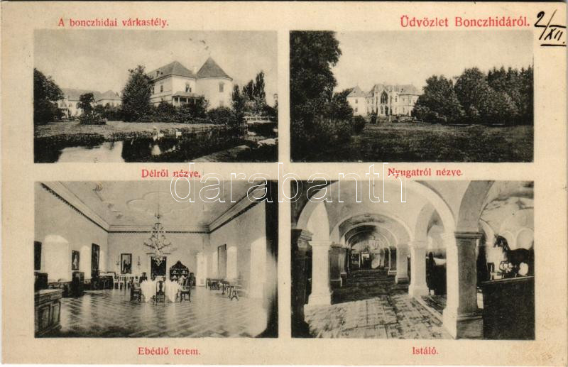 1907 Bonchida, Bontida; várkastély délről és nyugatról, ebédlő terem é... https://www.darabanth.com/hu/480-Gyorsarveres/480.0/Kepeslapok/Erdely~1000006/1907-Bonchida-Bontida-varkastely-delrol-es-nyugatrol-ebedlo-terem-es-istallo-belso-Dunky~II3276284