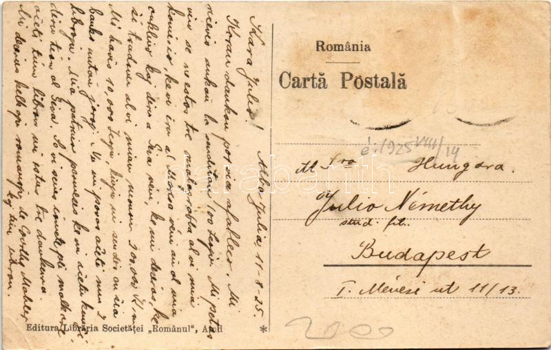 1925 Nagyenyed, Aiud; "Romanul" Kereskedelmi, ipari és gazdasági részvénytársaság / "Romanul" Societate pe actiuni industriala comerciala si economica / commercial, economic and industrial joint stock company (EK)