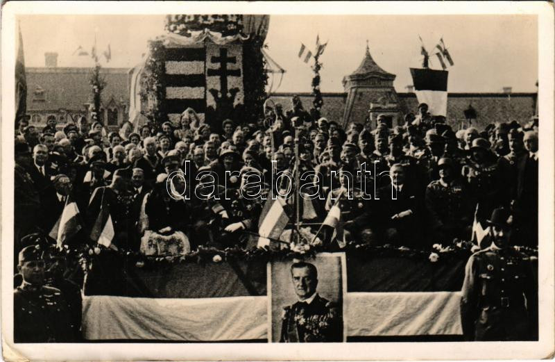 Leírás: 1940 Nagyvárad, Oradea; bevonulás, vitéz Nagybányai Horthy Miklós Magyarország kormányzója, Purgly Magdolna / entry of the Hungarian troops, Regent Horthy (fl)