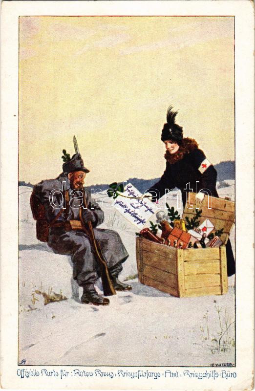 Offizielle Karte für Rotes Kreuz, Kriegsfürsorgeamt, Kriegshilfsbüro Serie II. Karte Nr. 3. / WWI Austro-Hungarian K.u.K. military art postcard with Christmas and New Year greetings s: E. Kutzer (EK)
