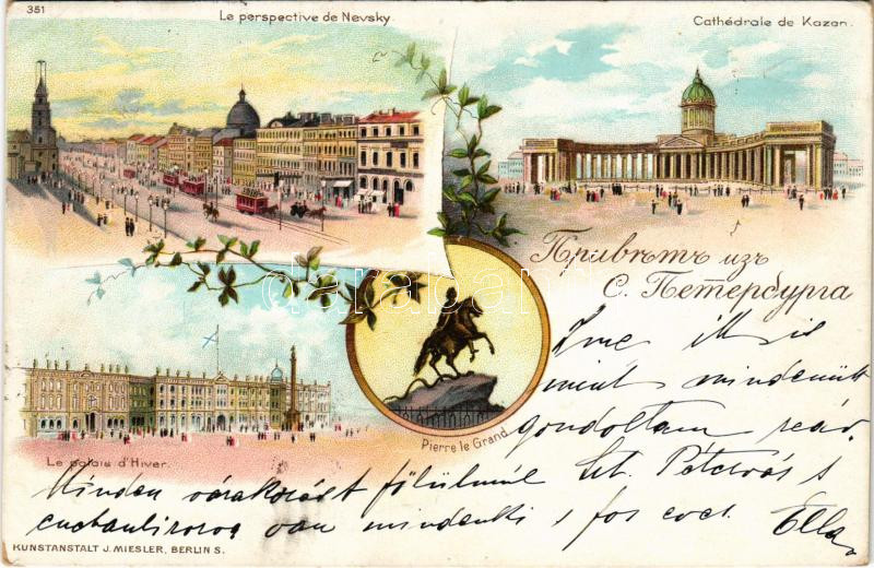 1897 (Vorläufer) Saint Petersburg, St. Petersbourg, Leningrad, Petrograd; Le perspective de Nevsky, Le palais d'Hiver, Cathedrale de Kazan / Nevsky Prospect, Winter Palace, cathedral. J. Miesler Art Nouveau, floral, litho (EK)