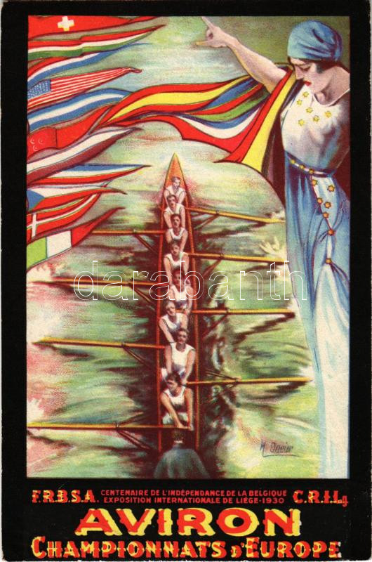 1930 Aviron Championnats d'Europe. Centenaire de l'Indépendance de la Belgique Exposition Internationale de Liege 1930 / European Rowing Championsip advertisement s: M. Dacier (EB)