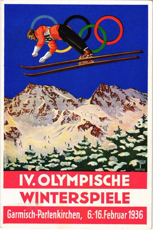 1936 Garmisch-Partenkirchen IV. Olympische Winterspiele / 1936. évi téli olimpiai játékok / Winter Olympics in Garmisch-Partenkirchen advertisement card, winter sport, ski jump + So. Stpl s: Schroffner
