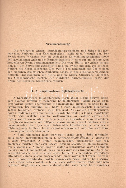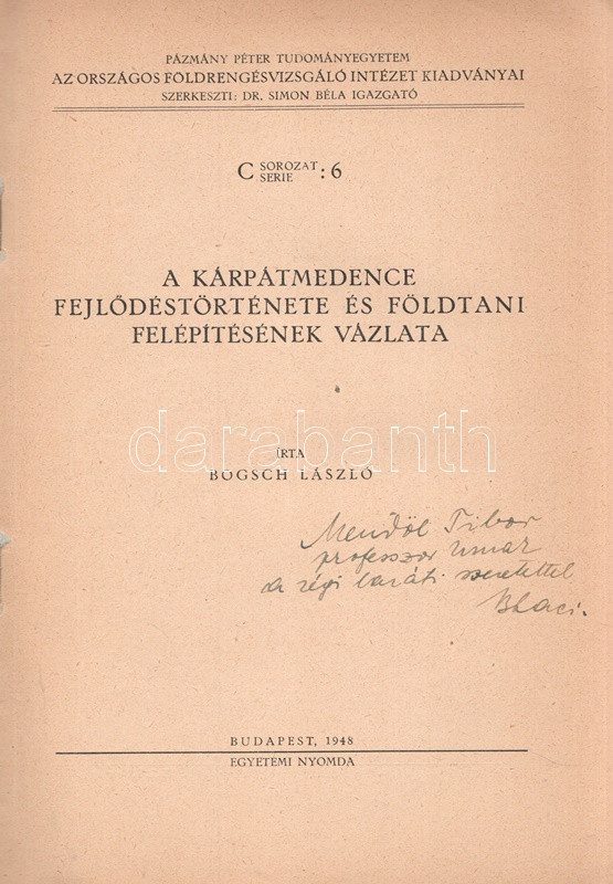 A Kárpátmedence fejlődéstörténete és földtani felépítésének vázlata. (Dedikált.)