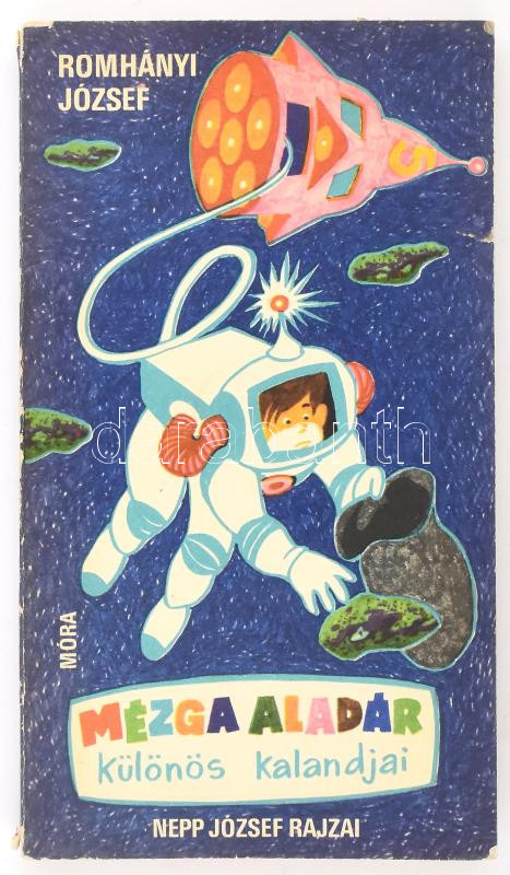 Romhányi József: Mézga Aladár különös kalandjai. Nepp József rajzaival. Bp., 1974, Móra. Kiadói illusztrált papírkötés, kissé kopott borítóval, a gerincen kis sérüléssel.