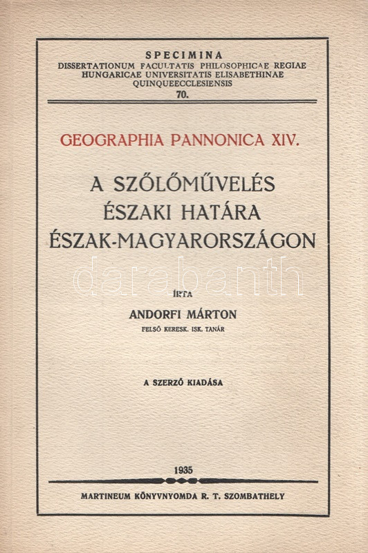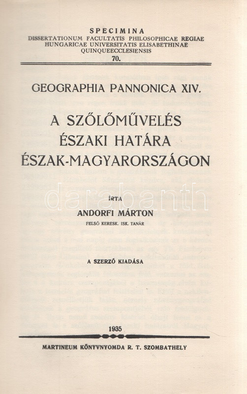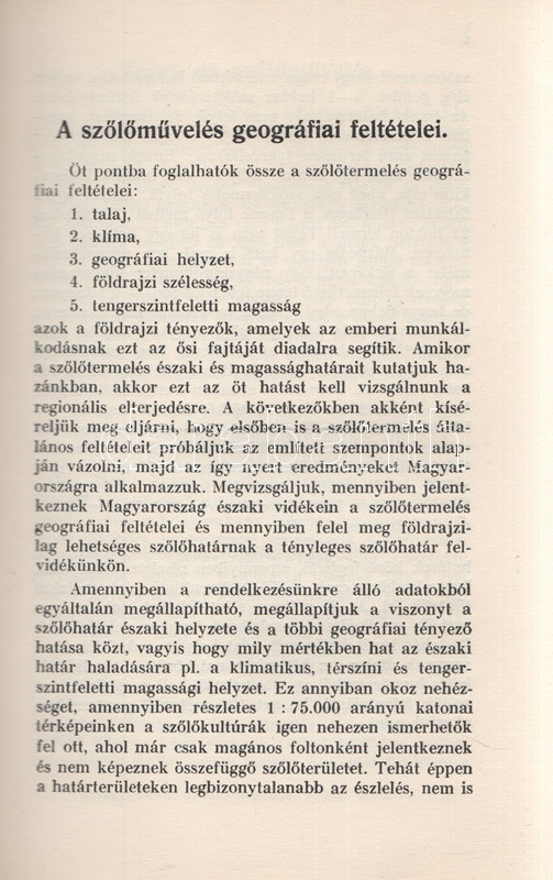 A pécsi Erzsébet Tudományegyetem Bölcsészettudományi Karának doktori disszertációi között megjelenő szőlészeti témájú geográfiai dolgozat a történelmi Magyarország határain belül állapítja meg a szőlőművelés legészakabbi határait.