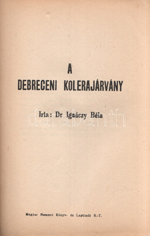 [Debrecen, 1931]. Magyar Nemzeti Könyv- és Lapkiadó Rt. 62 + [2] p. Egyetlen kiadás.