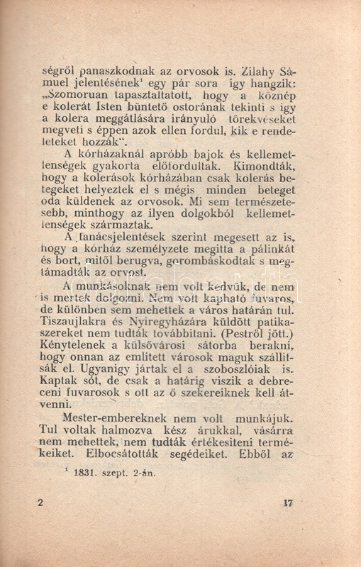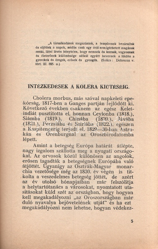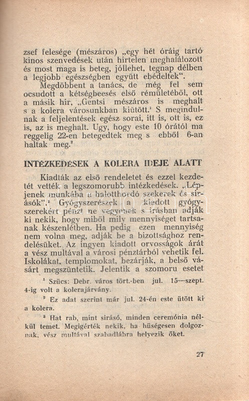 Az 1831. évi kolerajárvány Debrecen városát érintő 48 napos korszakának története, az előzetes híradások és intézkedések, a járvány tombolása alatt történtek és a járvány felszámolásának összefoglalásával.