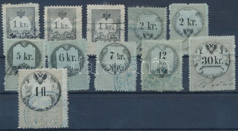 Leírás: 1864 Illetékbélyeg gyűjtemény berakólapon színváltozatokkal