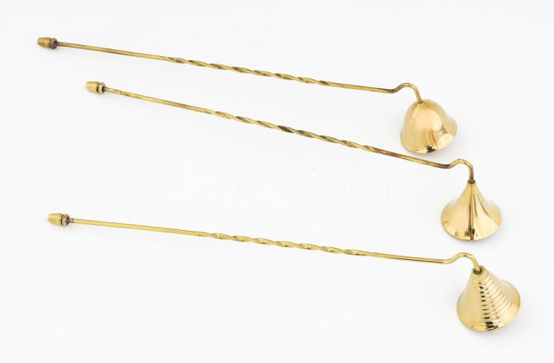 Leírás: 3 darab klf réz gyertyaoltó, h: 27 cm