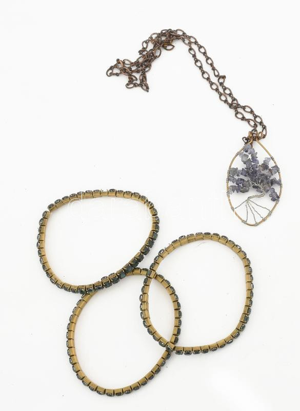 Leírás: 3 db zöld köves réz karkötő + nyaklánc
