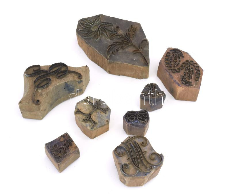 Leírás: 8 db mintanyomó fém, fa 3-9 cm