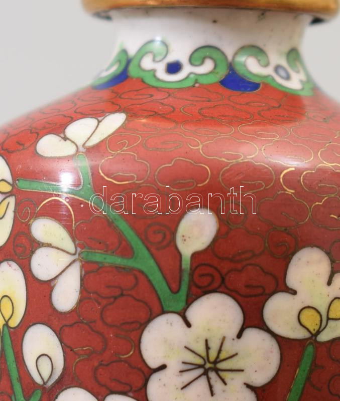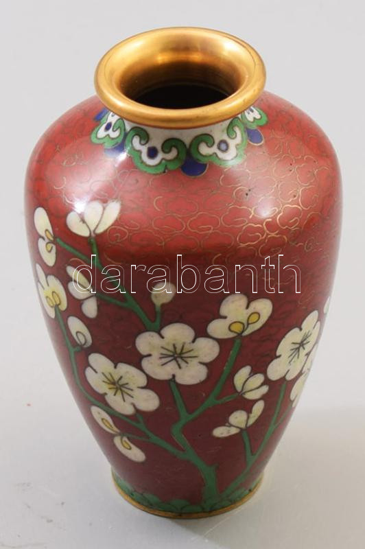 Leírás: Antik kínai zománcozott réz kisváza, m: 10 cm