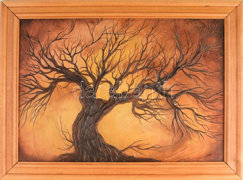 Leírás: Bőr kép, fali dísz, dekoratív fa keretben 60x45 cm Külső méret 70x52 cm