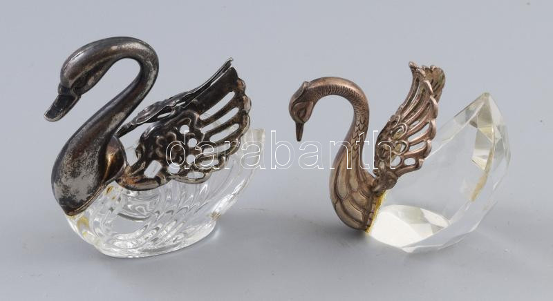 Leírás: Hattyú alakú üveg asztaldísz, és hattyú alakú ékszertartó, m: 7-8 cm