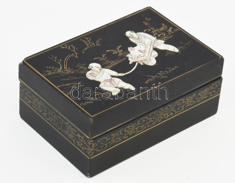 Leírás: Kínai lakk doboz gyöngyház berakással. kis kopással 10x17 cm