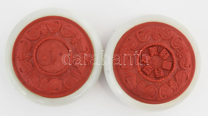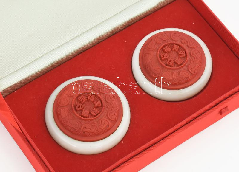 Leírás: Kínai talizmán Jáde és cinóber, benne gyenge mágnessel a hosszú élet és szerelem és egészségért jin és jang motívummal d: 6 cm eredeti dobozában