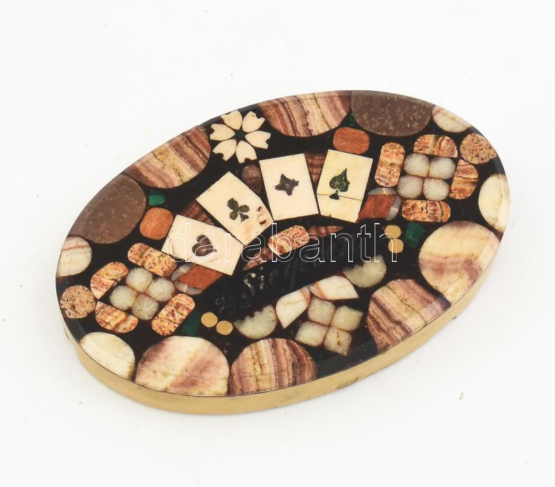 Leírás: Póker témájú kőintarziás levélnehezék, 7x4,5 cm