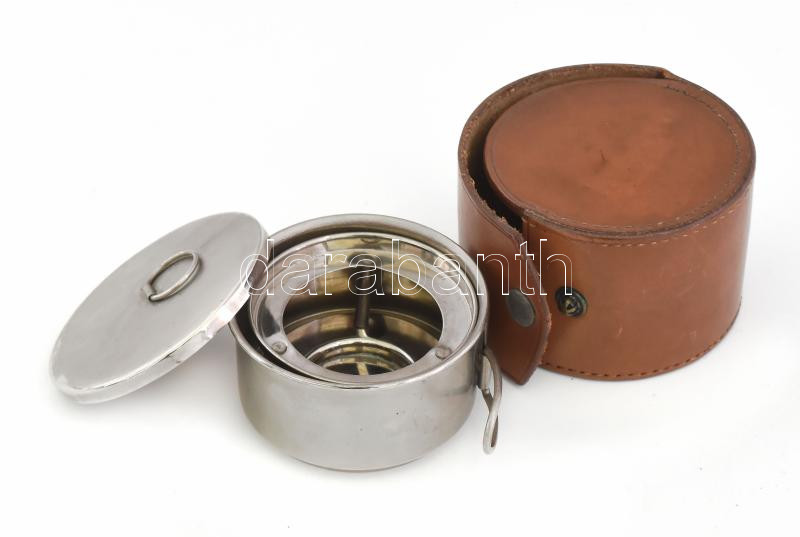 Leírás: Utazó ételmelegítő? szett, bőr tokban, d: 7,5 cm