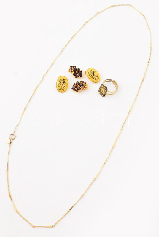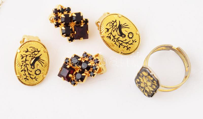 Leírás: Vegyes bizsu fülbevalók, gyűrűk, régebbi dekoratív darabok
