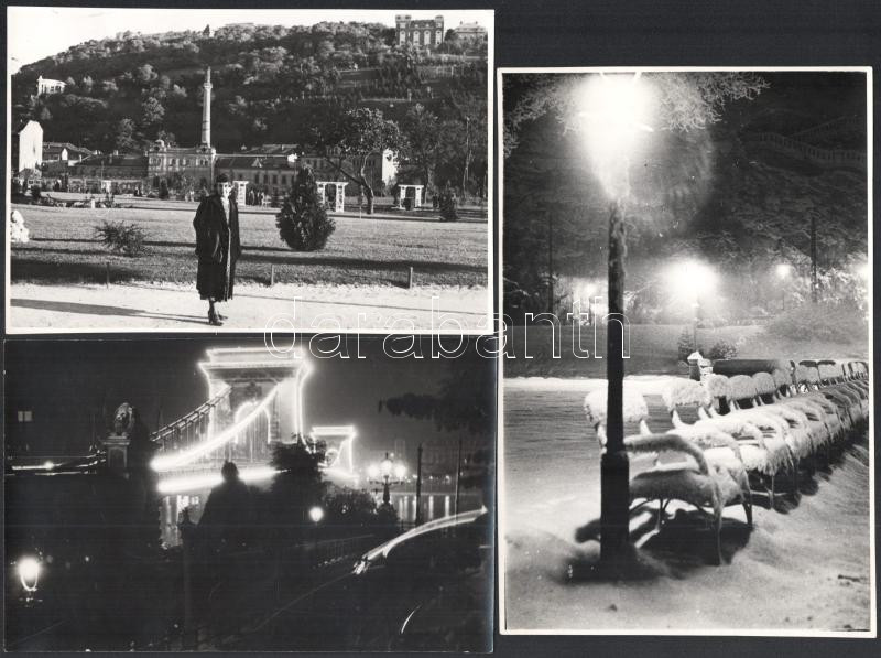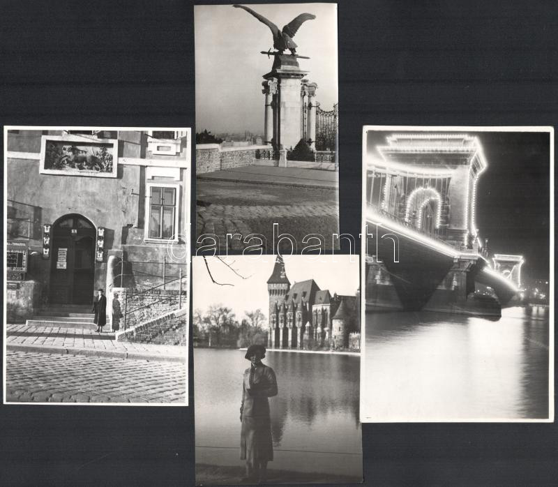 Budapesti életképek cca 1932 Lukáts László fotóművész eredeti vintage felvételei 7 db Rudas fürdő, Aranyszarvas vendéglő, Vár, éjszakai fények, Lánchíd, Városliget 11x17 cm
