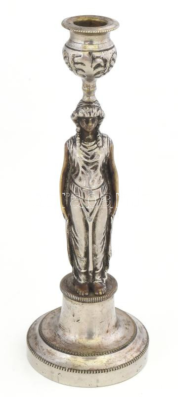 Leírás: Gyertyatartó. szecessziós nőalakot formázó krómozott réz. 23 cm